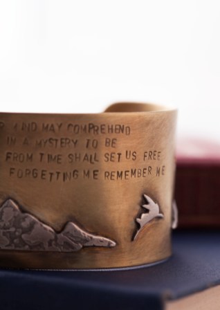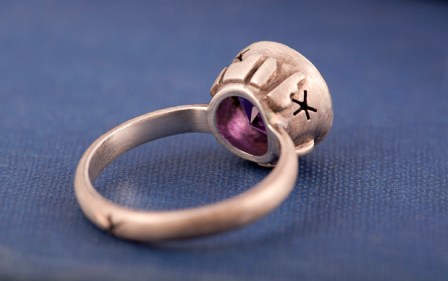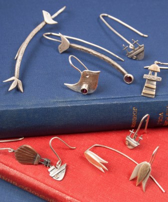 All of these pieces are made from sterling silver, 9 carat gold and copper. Other materials include semi-precious stones such as amethyst, prasiolite, moonstone, topaz, garnet, tourmalinated quarzt and aquamarine as well as blue mussel shell.