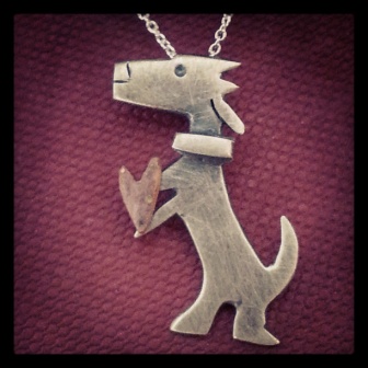 The dog pendant range consists of six different dog designs (for now). The pendants are not supposed to represent any particular breed of dog but instead they are meant to express the playful, lovable essence of the wonderful creature that is ‘dog’. Each one is handmade from sterling silver and copper and is sold with a sterling silver chain. I have numbered each one in order to make the process of ordering easier. Oh and if you happen to be a cat person then stay tuned as a range of cat pendants are in the pipeline!