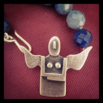 Sterling Silver Angel with Blue Agate beads